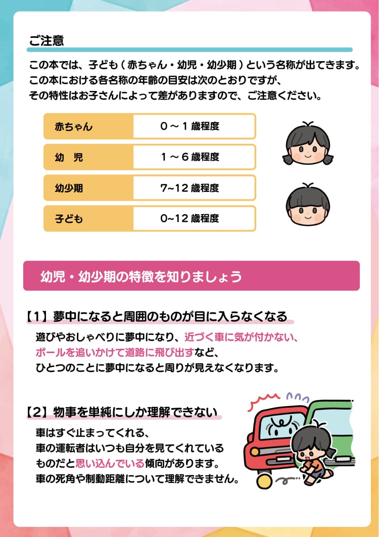 この本は、0~12歳のお子さんを持つ保護者の方に向けた交通安全教本です。